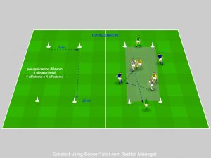 N.B. con 16 giocatori abbiamo formato due gruppi di lavoro, dove i due mister’s interagiscono con i propri gruppi.