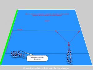 Sviluppo: campo con misura 50×65 si gioca un 10>10 con due zone neutre dove giocano i due portieri che vengono utilizzati anche per la costruzione.