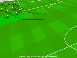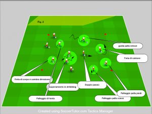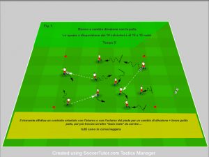 - controllo con l’interno piede – cambio di direzione – breve conduzione palla – passaggio ad un nuovo compagno