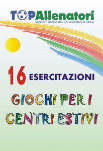 Top Allenatori con un importante e stimolante ebook propone a tutti gli istruttori del settore, sedici giochi per il campi estivi; 16 proposte di attività ludico motorie pre sportive per ragazzi dai otto ai tredici anni. Queste pagine sono rivolte anche a tutti gli addetti della scuola calcio che hanno a cuore una crescita equilibrata dei ragazzi loro affidati e desiderano riscoprire con loro il piacere del movimento. L’ebook molto pratico (viene inviato tramite mail in formato PDF) una lettura di giochi accompagnati da sedici immagini di riferimento, una lettura che possa stimolare e aiutare a meglio gli educatori a programmare le varie giornate del Camp estivi.
