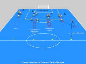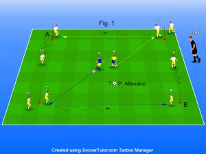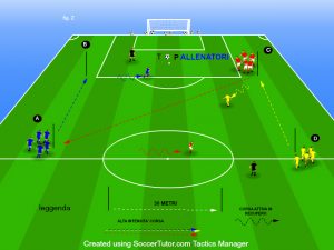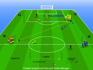 N.B. una fase media intensità che completa la messa in azione (inserendo anche una proposta tattica) e prepara i giocatori per il proseguo della seduta.