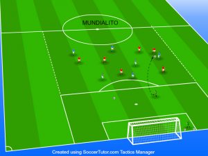 Si gioca una partita verso una porta soltanto “Mundialito” un 6 contro 6, si inizia sempre dal calcio del portiere (anche quando il pallone supera le linee del campo), lancia a piacere nell’area di gioco, quindi la squadra che si impossessa della sfera, sviluppa l’azione offensiva, mentre l’altra squadra, organizza la difesa della porta, e/o la riconquista.